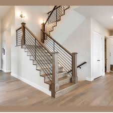 Whether your current stair railing is made of metal or through wood, it could be stylish. We've already managed to feature interior designs of the farmhouse kitchen, bathroom, bedroom, living room, dining room, sunroom, kids' room, nursery, home office and home bar. Check out our farmhouse stair rail selection for the very best in unique or custom, handmade pieces from our craft supplies & tools shops. Dressed up in cables to add a dash of industrial flair, this staircase designed by remedy 2 design and featured on home bunch is perfection. The white walls contrast with the striking dark railing.
